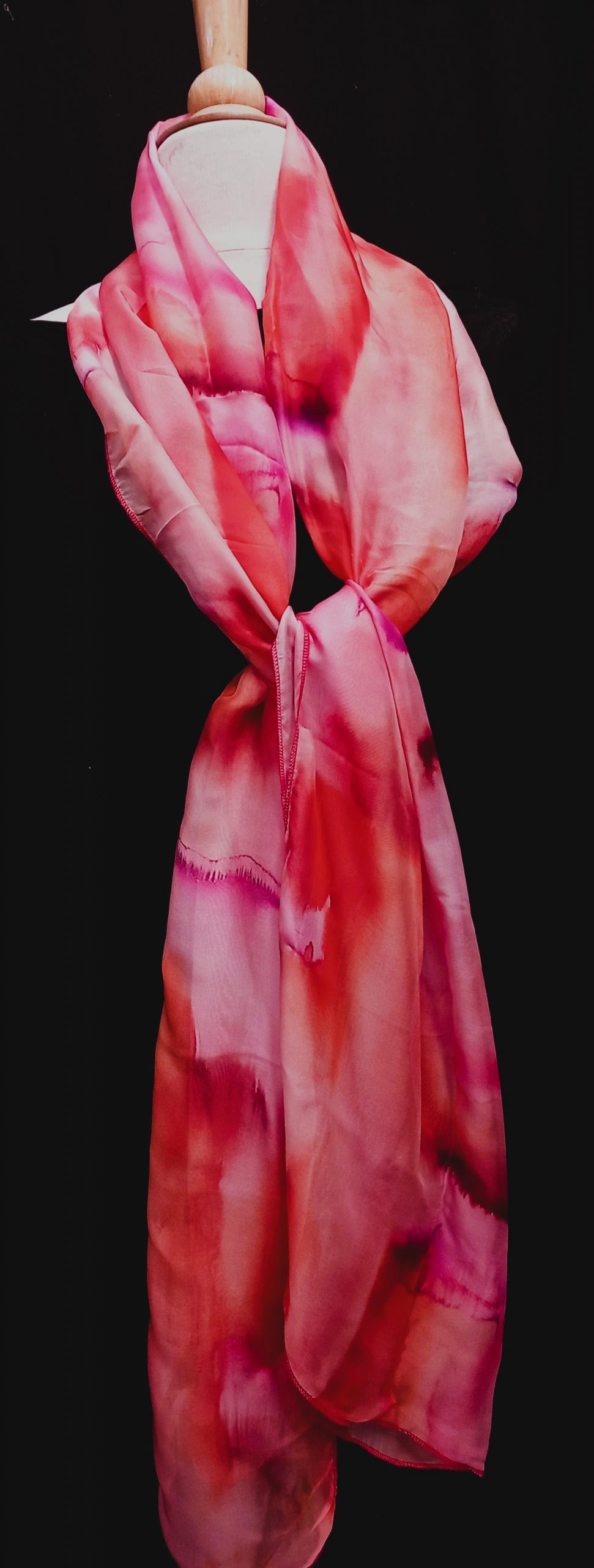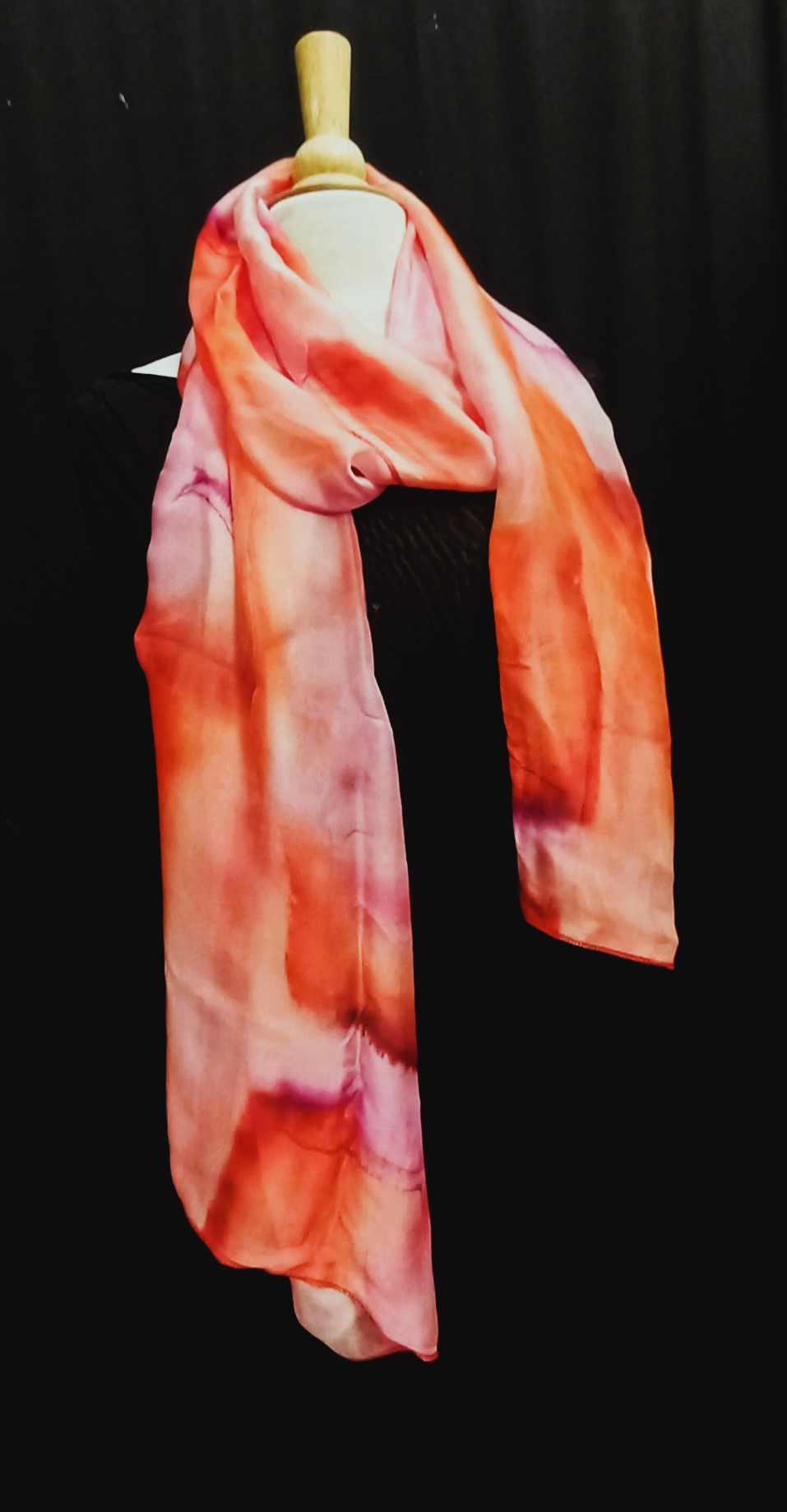 scarf…an apricot extralong silk chiffon scarf. |It is a one of a kind handpainted piece, a perfect accessory for any season